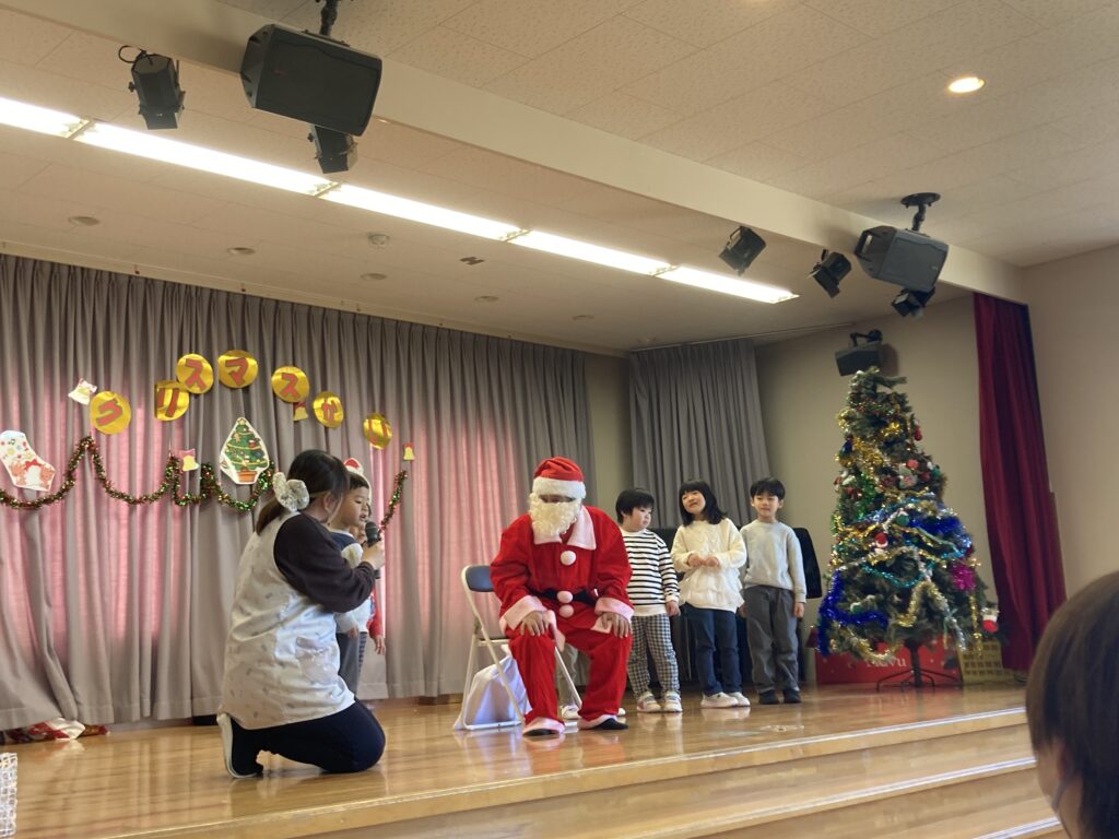 サンタさんの登場には「サンタさんだ!!」と嬉しそうにしている姿がありました!代表の数名が、質問をしたり、各クラスで一緒に写真を撮ったりしました!