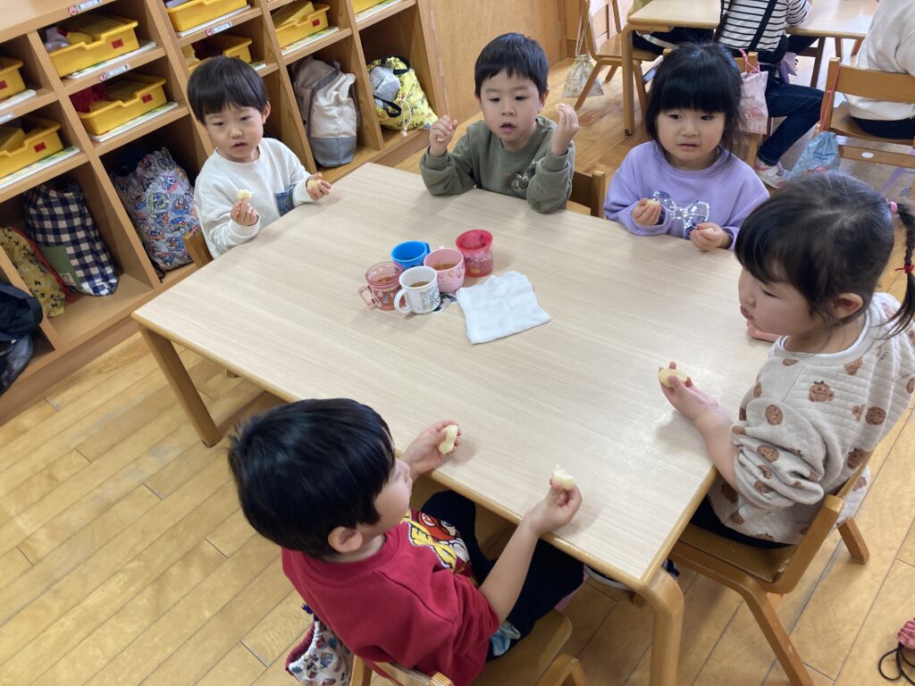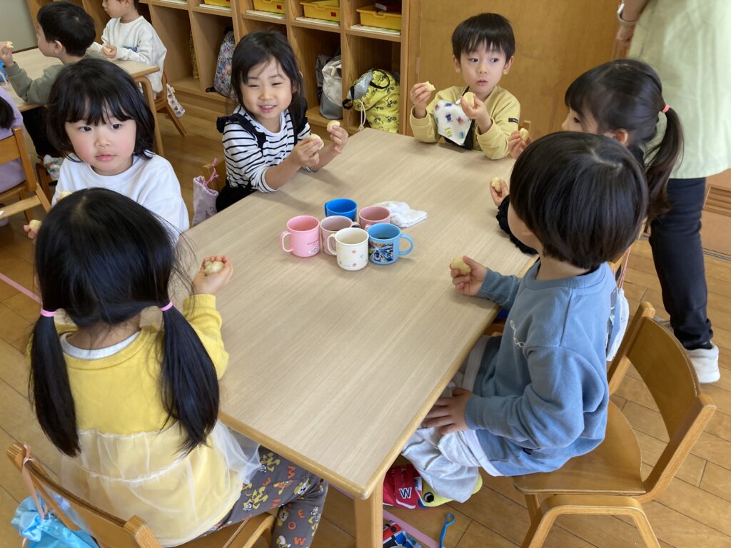 『もちつき』の歌をみんなで歌ったり、お餅の上に乗っているフルーツは何かな?やお餅は何からできているかな?などのクイズ大会もしました🌟