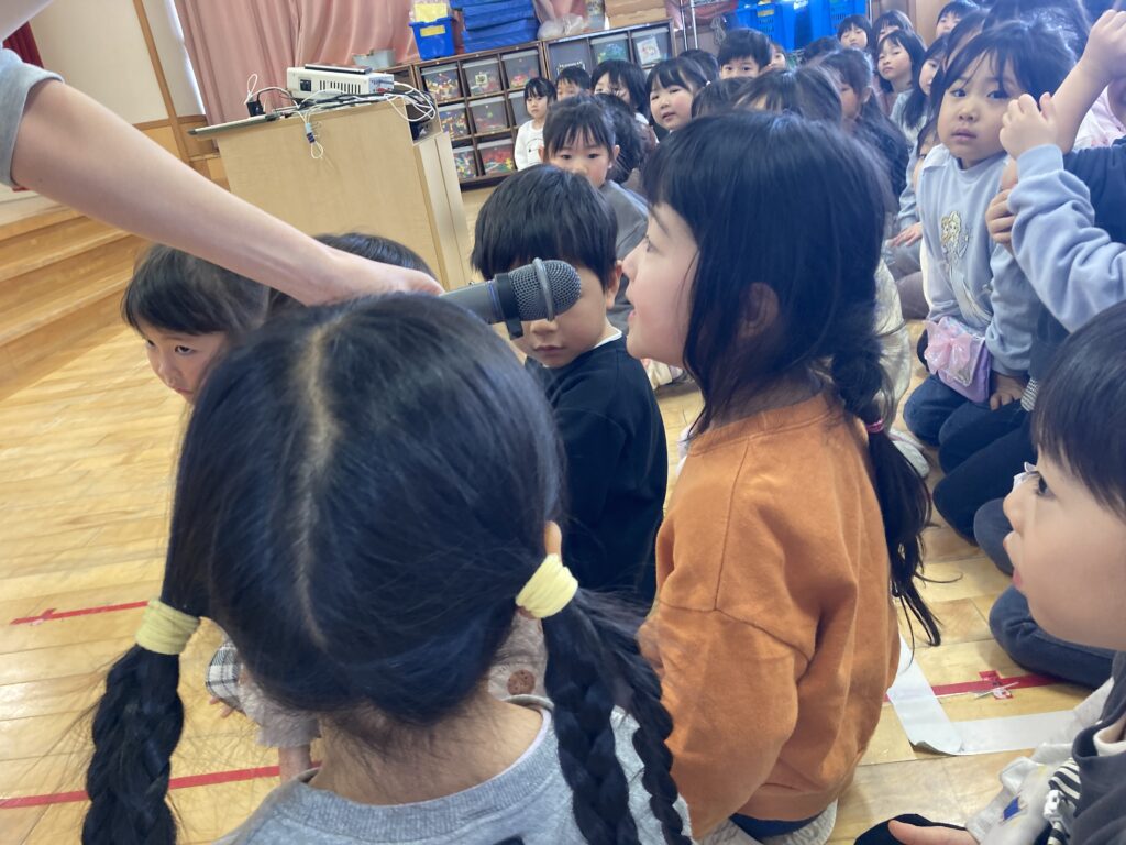 ひまわり組以外にもちゅうりっぷ組やさくら組も手を挙げて答えようとする子が多かったです!