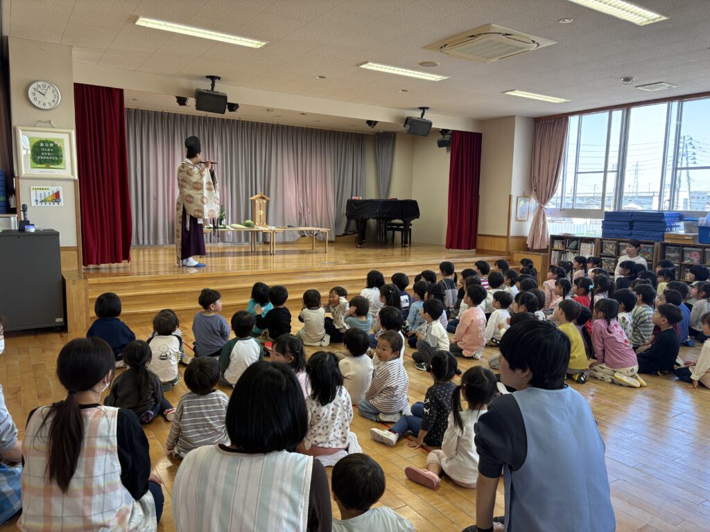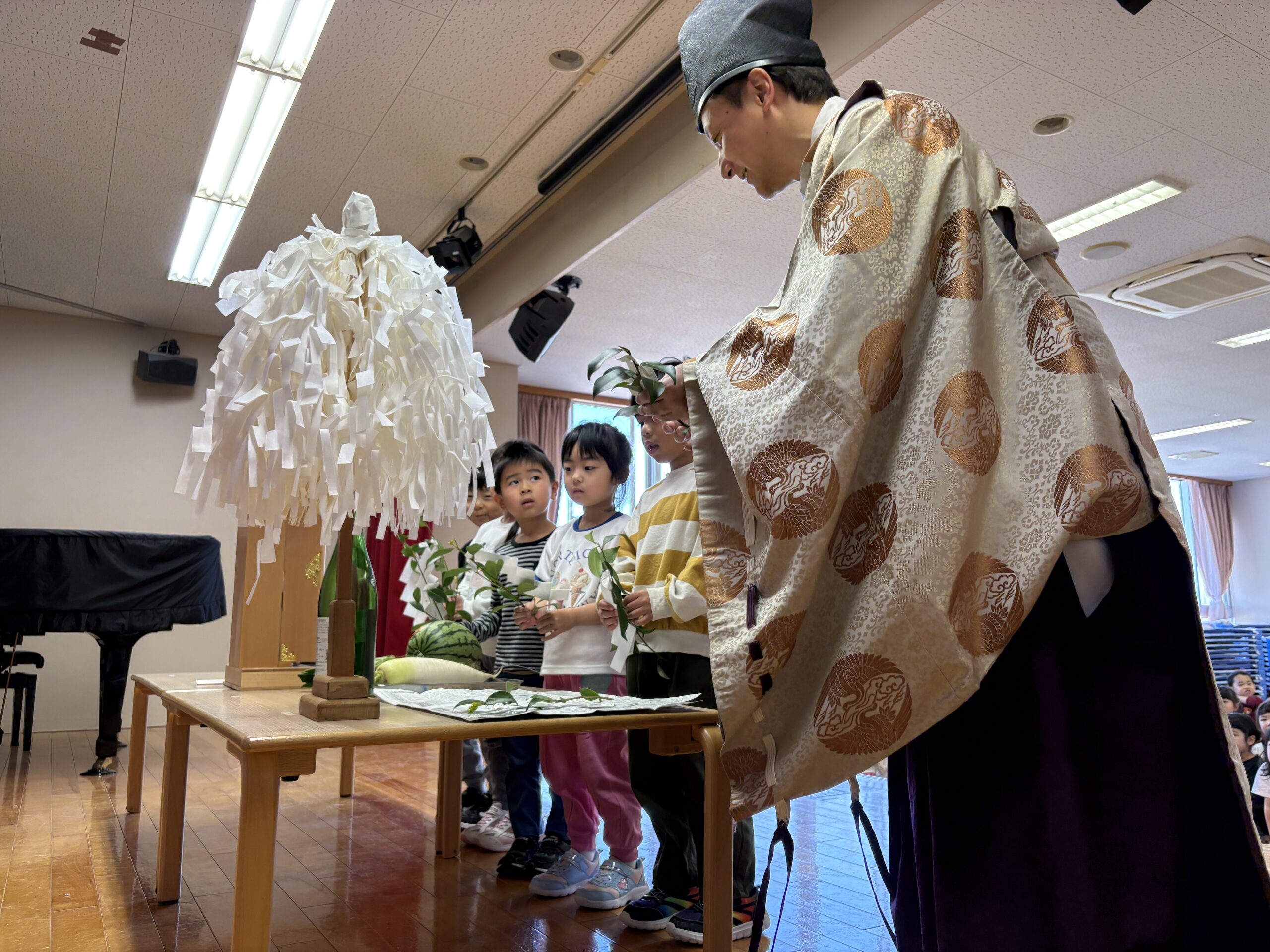 新年度がスタートし、もうすぐ1か月が経ちますね。 こども園では、1年間の子どもたちの健康や安全を祈願し、園長先生より【健康安全祈願】を行ってもらいました。子どもたちも厳かな気持ちで集会に参加していましたよ。